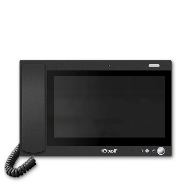 Монитор консьержа, Сенсорный экран 10", память на SD карту, видеоинтерком между домофонами. Пластиковый корпус, кнопка быстрого открытия замка. Получение тревожных сообщений от мониторов. Подключение до 1000 индививидуальных и 100 многоабоненских панелей. Просмотр 32 IP камер. Напряжение питания + 12В и PoE. Поддержка SIP P2P. Размер: 303×194×64 мм. Цвет - черный.