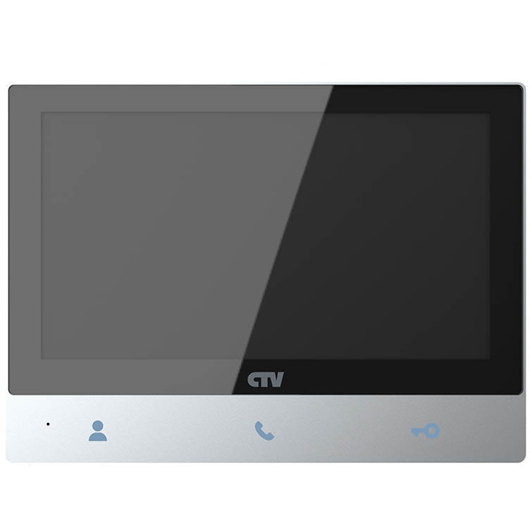 Монитор видеодомофона, стеклянная сенсорная панель управления "Easy Buttons", поддержка форматов AHD, TVI, CVI и CVBS с разрешением 1080p/720p/960H, автоответчик, режим ожидания с индикацией времени, встроенный источник питания. Дисплей: 7" TFT LCD IPS (16:9). Разрешение, пикселей: 1024 x 600. Стандарт видео: PAL/NTSC. Формат видео: AHD, TVI, CVI, CVBS. Разрешение видео: 1080p, 720р, 960H. Тип интеркома: Hands free, полудуплекс. Поканальная настройка видео: Да. Продолжительность сеанса вызова: 130 сек.. Сенсорные кнопки управления: Да. Запись: фото, видео. Внутренняя память: Да, на 100 фото. Поддержка карт SD: microSD-card class 10 до 64 Гб, запись фото и видео. Детектор движения: да, один канал одновременно. Голосовые сообщения/Автоответчик: Да. Сигнал HOOK: Да. Напряжение питания: AC 100~240В . Рабочая температура: -10°C-50°C. Подключение панели: 4-х проводное. Габаритные размеры: 176мм (Ш) x 129мм (В) x 19,8мм (Г). Вес: 0,5 кг