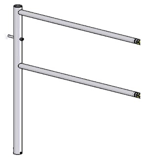 Поворотная стойка на ролике с пружинным фиксатором- замком, двойной поручень из трубы ф 32мм нерж.сталь, на поворотных петлях пластиковая заглушка трубы.