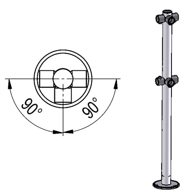 Труба D=50 мм Н=1000 мм из шлифованной нержавеющей стали, 6 пластиковых муфт с крепежом, крышка основания, скрывающая крепление стойки к полу; заглушка из черного пластика.