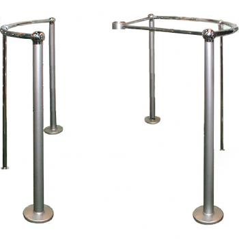 Ограждение хромированное. Комплект состоит из из четырех стальных стоек диаметром 48-50 мм с унифицированными крепежными узлами (муфтами), двух опорных стоек диаметром 25 мм и двух гнутых горизонтальных хромированных перемычек диаметром 32 мм.