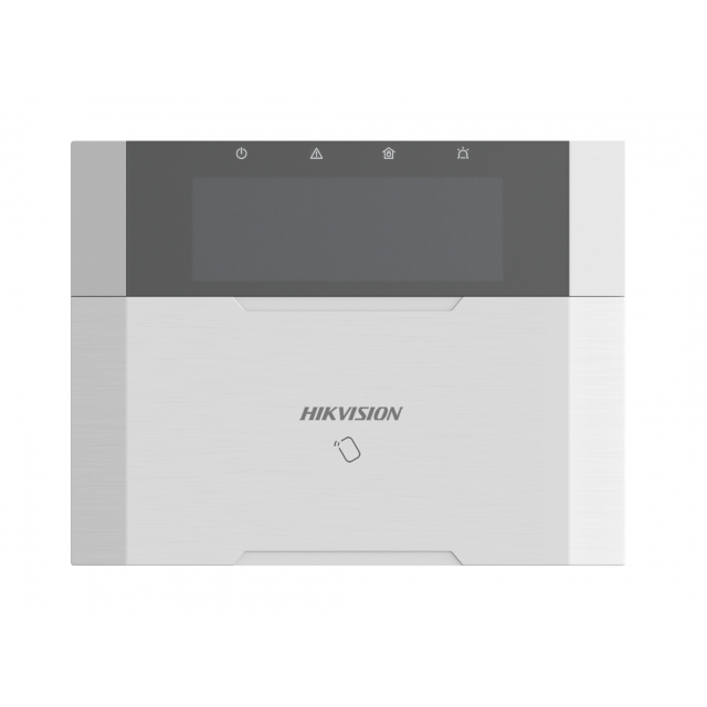 Проводная клавиатура c LСD идикатором (AX Hybrid Pro) LCD-экран 80 × 25 мм, RS-485, 868МГц (для связи с беспроводныс брелоком) Поддерживает постановку и снятие с охраны с помощью считывания карт Поддерживает дистанционную постановку и снятие с охраны с помощью брелока (до 64) Поддерживает 2 встроенных тревожных входа и 1 встроенный тревожный выход Поддерживает отображение состояния системы в реальном времени с помощью светодиодного индикатора 12В DC; Рабочая температура: -10°C до +55°C; Размер 150 х 115 х 28мм Совместимость: Охранная панель Hikvision DS-PHA48-EP и DS-PHA64-LP