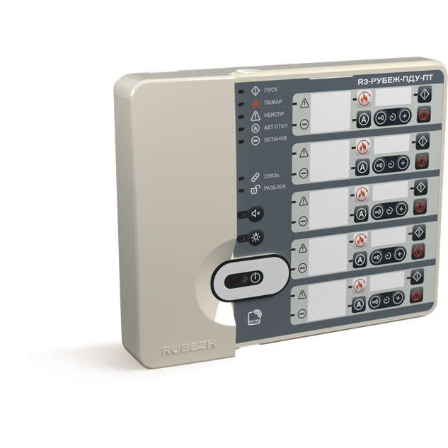 Пульт дистанционного управления системы пожаротушения R3-Рубеж-ПДУ-ПТ предназначен для дистанционного управления режимами работы многозонной (до 5 зон) системой пожаротушения, подключенной в АЛС одного или нескольких приемно-контрольных приборов R3-Рубеж-2ОП.