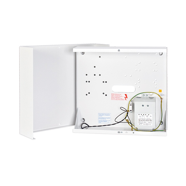 Корпус металлический стандарт EN50131 Grade 3 для плат ПКП Versa, Integra, дополнительных модулей Satel, двойная защита от вскрытия и отрыва от поверхности, трансформатор 40 ВА. Напряжение питания 220 В АС, выходное напряжение трансформатора U транс.= 18 В АС, отсек для АКБ 7-12 mA. Размеры (мм): 325х310х110.
