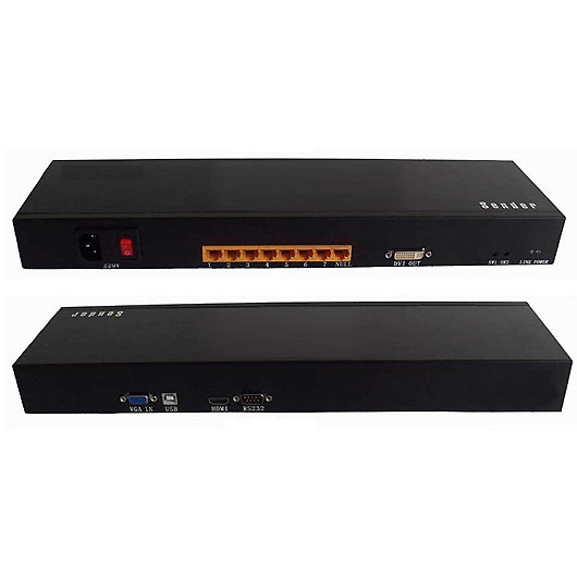 Передатчик 1-го HDMI и USB сигнала на 7 удалённых приёмников; расстояние передачи до 100м; видеоразрешение до 1080p; скорость передачи в каждую точку до 1Гб/сек; входы HDMI/VGA/USB, выходы 7 RJ45/DVI(для подключения локального монитора); питание AC220В/20Вт, рабочая температура: -15...+55гр.С; комплектность-шнур 220В.,шнур HDMI; размеры 425х115х45мм. Работает с приёмниками RA-Hi/1