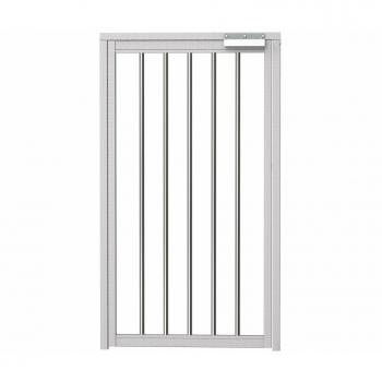 Полноростовое ограждение - цельная секция-дверь с электромагнитным замковым устройством шириной 1000 мм, окрашенная порошковым методом, стандартный цвет – «белый антик». Полноростовые ограждения для полноростовых роторных турникетов применяются как дополнение для перекрытия прохода. Специальная конструкция позволяет на вертикальных вставках сделать сварные швы невидимыми.