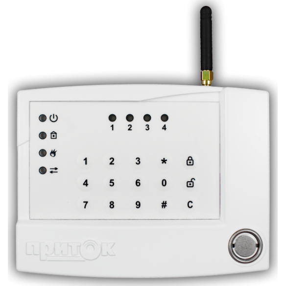 Прибор приемо-контрольный охранно-пожарный, каналы связи GPRS и SMS (2 SIM карты), 4 ШС, встроенный считыватель ТМ (клеммы для подключения внешнего считывателя), встроенная клавиатура, U-пит. 10.2... 14.5 В, I-потр. ≤250 мА, 4 выхода "ОК" (≤ 12 В/50 мА), t-раб. -10…+45°C, габ.размеры 148х118х38 мм.