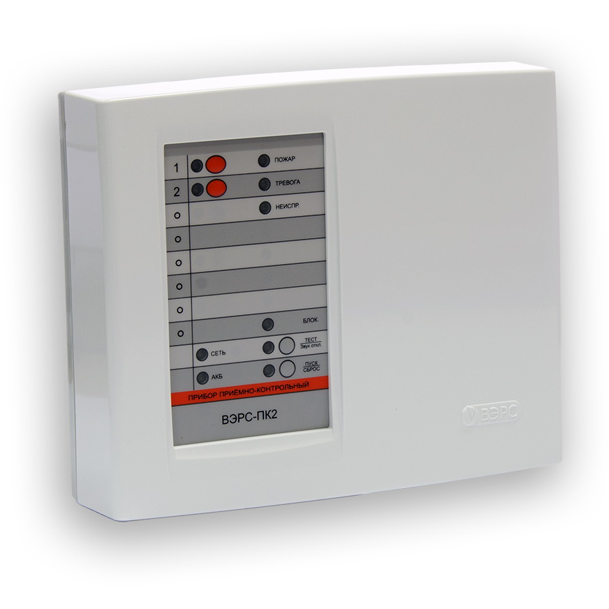 Прибор приемно-контрольный охранно-пожарный 2 ШС (охранные, пожарные, технологические), 3 реле ПЦН, выходы ОК с током нагрузки до 1А с контролем линий оповещения, вход ТМ, RS-485, встроенный регистратор событий, конфигурирование с помощью ВЭРС-ПК Prog, напряжение питания 220 В, вход внешнего РИП, под АКБ 12 В /4,5 Ач, пластиковый корпус, считыватель ТМ в комплекте.