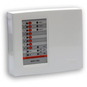 Прибор приемно-контрольный охранно-пожарный, 8 ШС (охранные, пожарные, технологические), 3 реле ПЦН, выходы ОК с током нагрузки до 1А с контролем линий оповещения, вход ТМ, RS-485, конфигурирование с помощью ВЭРС-ПК Prog, напряжение питания 220 В, вход внешнего РИП, под АКБ 12 В /4,5 Ач, пластиковый корпус.