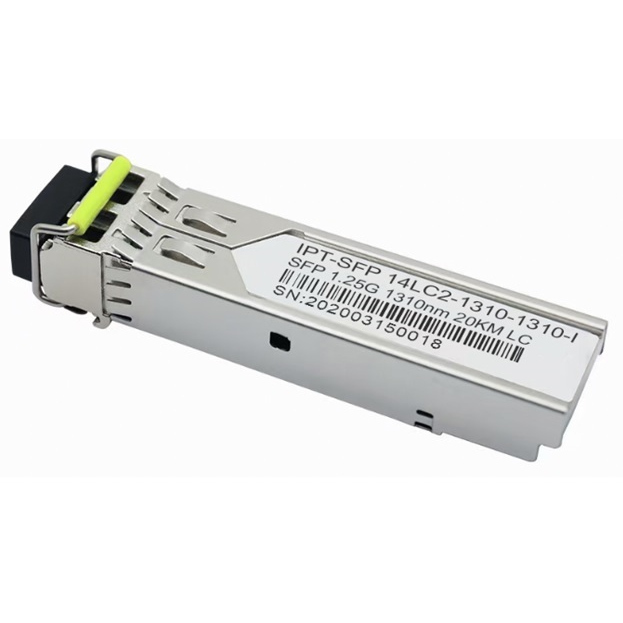 Приемопередатчик с малым форм-фактором (SFP) представляет собой высокопроизводительный экономичный модуль с дуплексным оптическим интерфейсом LC, стандартным CML со связью по переменному току для высокоскоростного сигнала, сигналов управления и контроля LVTTL. В секции приемника используется PIN-приемник, а в передатчике используется лазер FP 1310 нм. 14 дБ обеспечивает применение этого модуля 1000 BASE Ethernet на расстоянии 20 км.