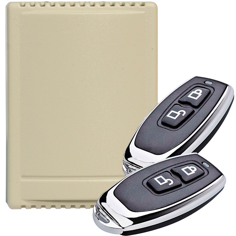 Комплект дистанционного управления радиоканальный. В комплекте 2-х канальный приёмник + 2 брелока, дальность до 60м, частота 433.92МГц, до 30 брелоков, 2 канала (реле 10А/250В АС или 10А/30В DC) с 4-мя вариантами управления, питание приемника 12В DC.