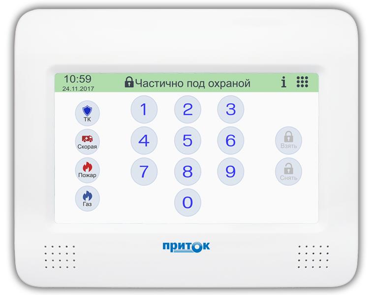 Клавиатура. Пластиковый корпус. Сенсорный экран 7"Шина расширения RS485 Питание -внешний резервируемый источник 12 В.