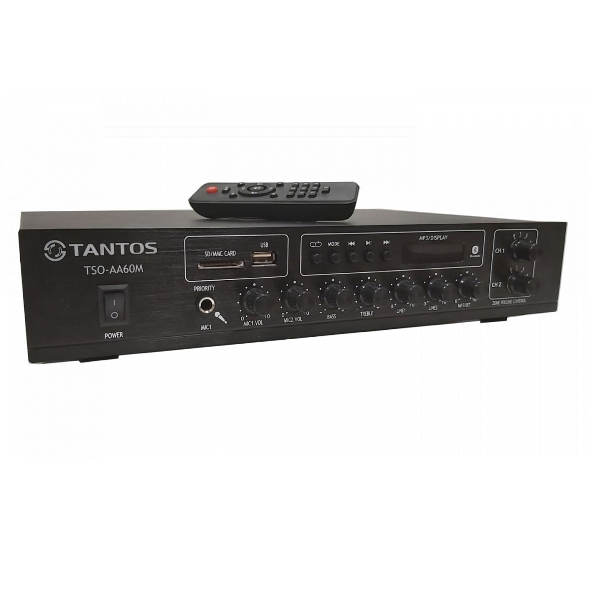 Компактный трансляционный усилитель, 60 Вт, 2 зоны оповещения, Выходы на громкоговорители: 60 Вт RMS/100 В, выход 60 Вт (не менее 8 Ом), USB, FM-тюнер, Bluetooth, mp3, 1 приоритетный микрофонный / 1 линейный входы, 1 линейный выход, Воспроизводимые форматы SD карты: MP3, WMA, габариты: 354×255×66 мм.