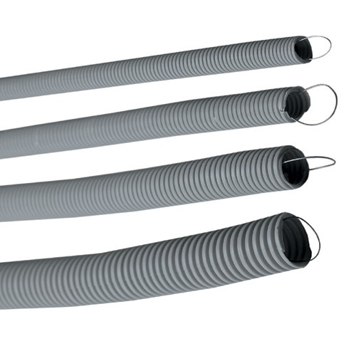 Труба легкая гофрированная с протяжкой, цвет серый ПВХ D = 50 мм. Бухта (15 м).