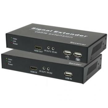Комплект для передачи HDMI, USB и ИК управления по кабелю витой пары (CAT5e/6) до 150м. Разрешение до 4K2K(3840x2160,60Гц). Поддержка HDMI 2.0 и HDCP 2.2. Порты USB предназначены только для подключения клавиатуры и мыши.Передатчик:Вх.-HDMI(A)/Роз.2,1x5,5мм(DC12V)/TRS3.5мм(IR).Вых.-USB(A)/TRS3.5мм(IR)/RJ45.Приёмник:Вх.-RJ45/TRS3.5мм(IR)/Роз.2,1x5,5мм(DC12V)/USB(A)x2. Вых.-HDMI(A)/TRS3.5мм(IR).В комплекте БП DC12V(1А) - 2шт,соединительные шнуры для подключения к источнику сигнала-HDMI, USB, ИК-излучатель, ИК-приёмник. Размеры каждого устройства (ШxВxГ): 131x32x93мм. Вес: 0,6 кг. Рабочая температура: -15...+55С.