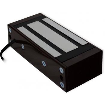 Замок электромагнитный, 300 кг, 12В/330мА пост.тока, встроенная цепь размагничивания, для эксплуатации внутри помещений. В комплекте крепежный уголок.