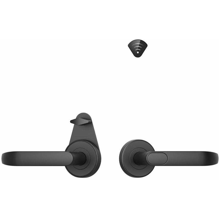Замок гостиничный беспроводной. Дизайн "Черный" (порошковая покраска"), материал: сплав цинка. Раздельные ручки, скрытый считыватель. Врезной механизм ANSI, ригель - сталь. Онлайн, BLE