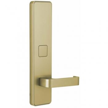 Замок гостиничный беспроводной. Дизайн "Золото", материал: алюминий на стальном шасси, покрытие методом IMD Врезной механизм типа Euro, ригель и защелка - нержавеющая сталь