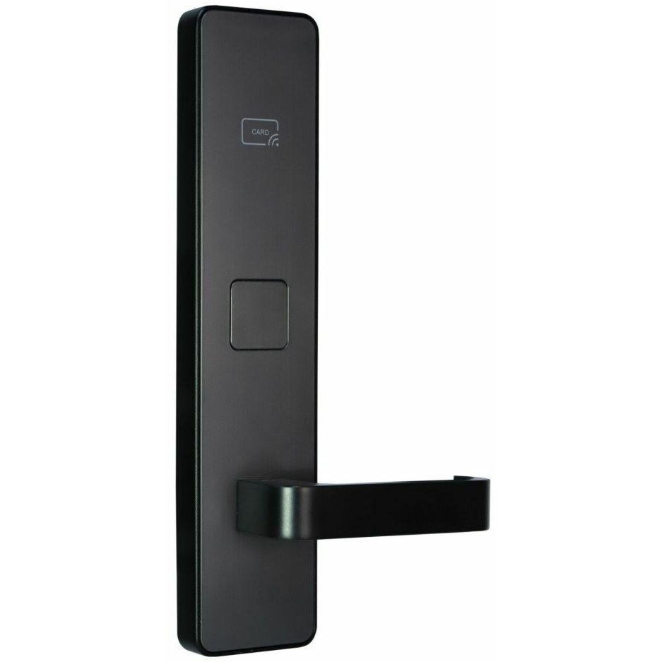 Замок гостиничный беспроводной. Дизайн "Матовый темно-серый", материал: алюминий на стальном шасси, покрытие методом IMD. Врезной механизм типа Euro, ригель и защелка - нержавеющая сталь. Онлайн, BLE